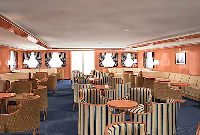 Continuando pela descoberta dos seus interiores vamos encontrar no "Observation Louge" um dos mais espectaculares recantos do navio com uma deslumbrante sala redonda com um bar quadrado e uma soberba vista panorâmica. aonde o "Early Risers Café" se torna uma óptima opção.